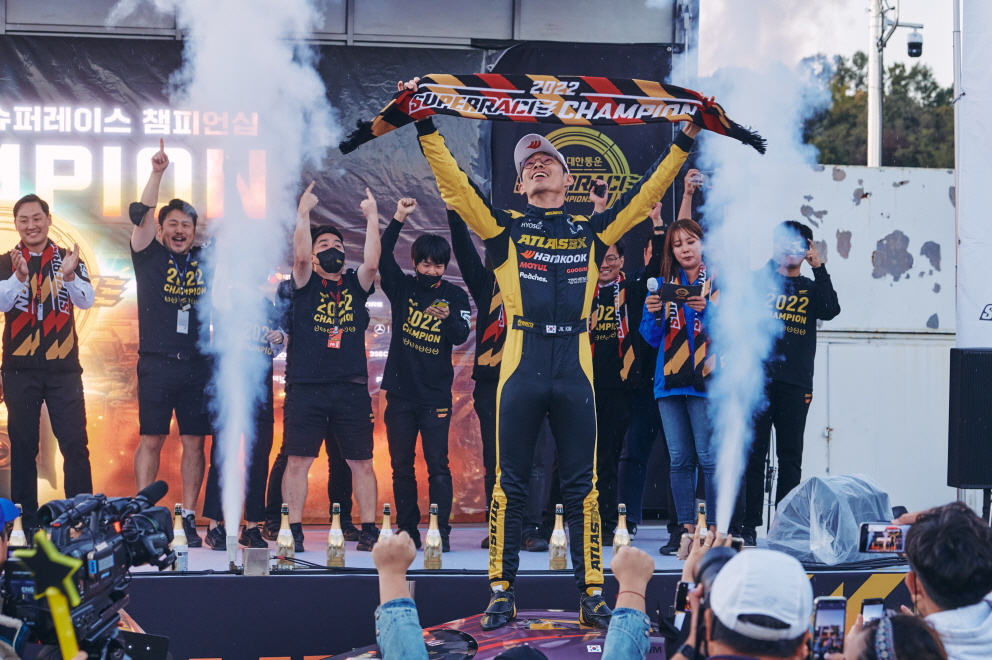글로벌 선도 타이어 기업 한국타이어앤테크놀로지㈜(대표이사 이수일, 이하 한국타이어)가 지난 23일 경기 용인 에버랜드 스피드웨이에서 8라운드를 끝으로 막을 내린 ‘2022 CJ대한통운 슈퍼레이스 챔피언십 삼성화재 6000 클래스’에서 ‘타이어 제조사 챔피언십’ 부문에 이어 ‘드라이버 챔피언십’과 ‘팀 챔피언십’까지 모두 우승을 차지하며 대한민국 레이싱 타이어 강자의 면모를 다시 한 번 입증했다.