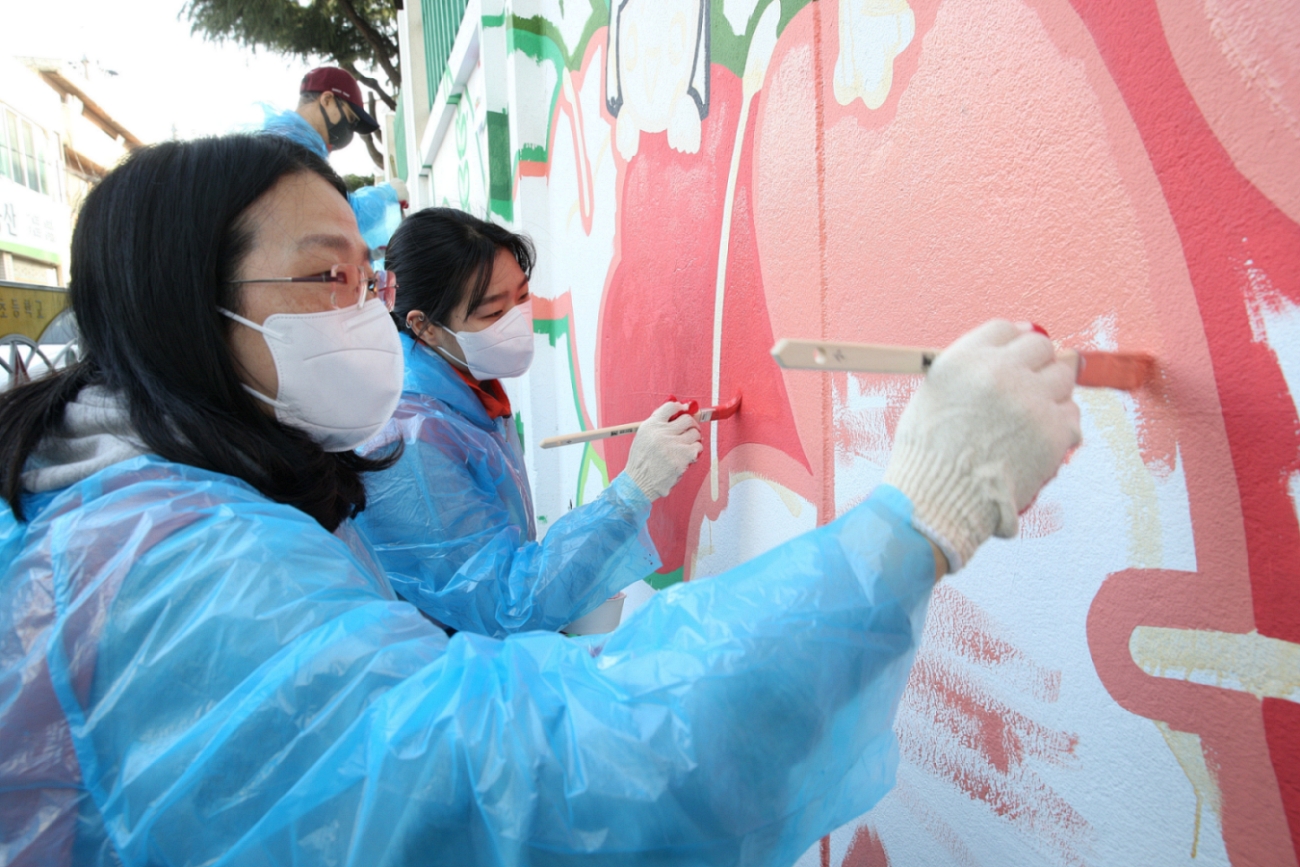 ■ 11월 26일 안양 관양초등학교, 대전 용전초등학교 등 2개 학교에서 벽화 그리기 봉사 펼쳐