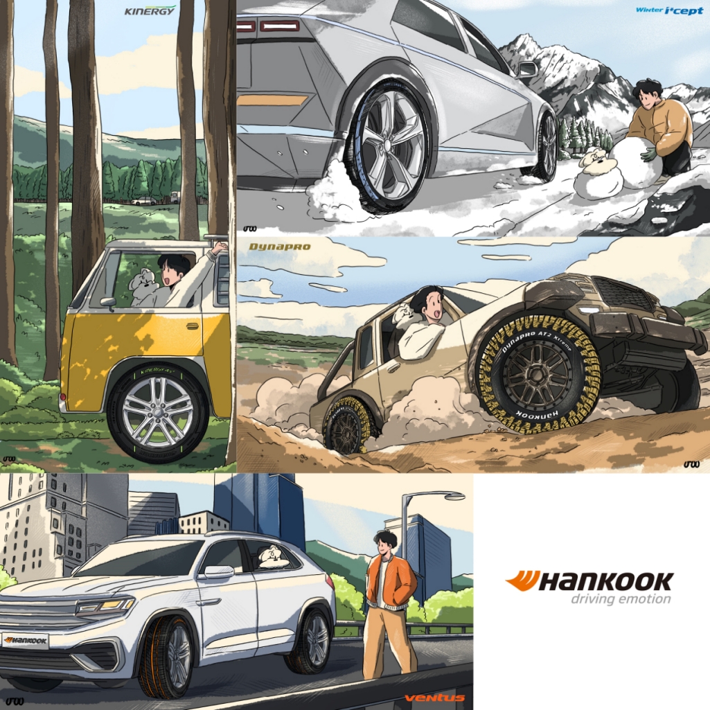 이번 콜라보는 한국타이어의 초고성능 프리미엄 타이어 ‘벤투스(Ventus)’, SUV 전용 타이어 ‘다이나프로(Dynapro)’, 스탠다드 타이어 ‘키너지(Kinergy)’, 겨울용 타이어 ‘윈터 아이셉트(Winter i*cept)’ 등 주요 상품 브랜드를 모티브로 한국타이어와 함께하는 따뜻한 일상을 표현한 것이 특징이다.